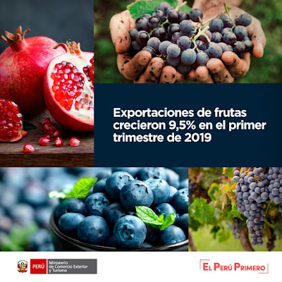 De acuerdo al Centro de Investigación Empresarial de PerúcamarasLas exportaciones agropecuarias de la macrorregión norte se incrementaron en 24.4 % en el 2018, al sumar 2,601.7 millones de dólares, de acuerdo al informe del Centro de Investigación Empresarial (CIE) de la Cámara Nacional de Comercio, Producción, Turismo y Servicios (Perúcamaras). Este sector registró la mayor participación dentro de la estructura exportadora no tradicional de esta parte del país (66.1%). Los principales productos exportados fueron los arándanos rojos que alcanzaron los 473.8 millones de dólares (con un crecimiento de 46.5 %) y las uvas por 408.6 millones de dólares (50.4 % de incremento). Les siguen las paltas, 365.6 millones de dólares (+14,4 %) y los mangos 206.7 millones de dólares (+38,1 %).